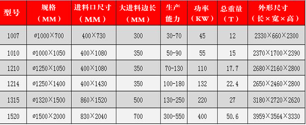 【生產能力】進料粒度:1200mm 20~500噸/小時;